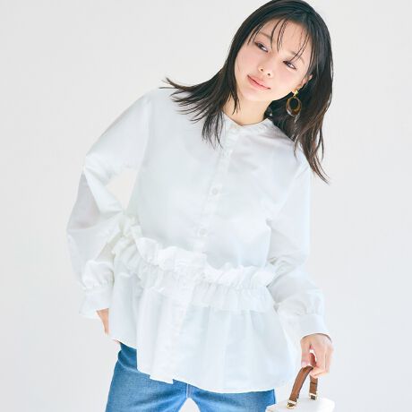 ホイップフリルデザインが一枚で様になる春ブラウス