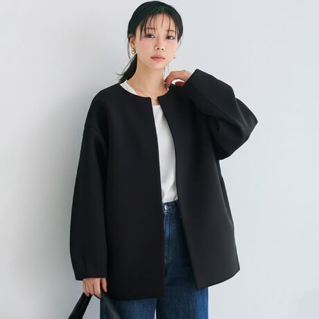 きれいめにも着こなせる、バウンススウェットノーカラーコート