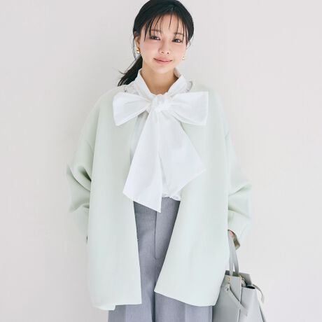 セットアップやワンピースの上に羽織れば、セレモニーシーンにもおすすめです。