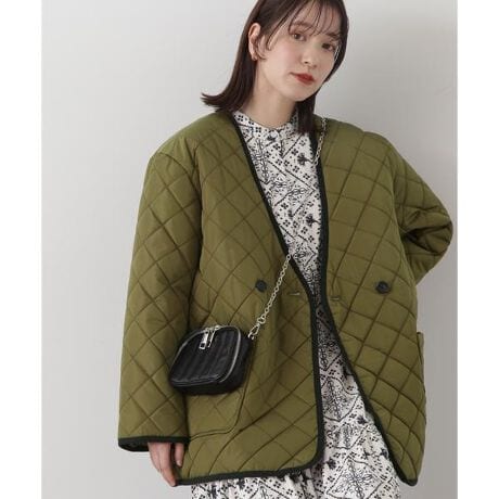 [型番:1664155150]大人カジュアルにぴったりなキルティングノーカラーブルゾンは、前ボタン付きでラフに羽織れるデザインです。深めに開けたノーカラーなので、中にハイネックやフリル襟アイテムも映える仕上がり。体のラインをすっぽりカバーするシルエット、ワンピースもパンツも合わせていただける丈感です。フェミニンな総柄ワンピースもデニムパンツも合わせやすく、雰囲気が違うスタイリングを楽しめるアウターです。