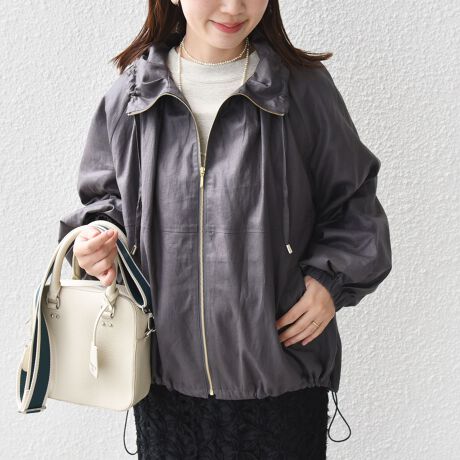 * 〈手洗い可能〉リネン レーヨン コーティング スタンド カラー ジップ ブルゾン 24SS ◇