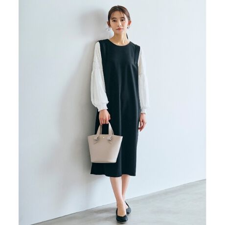 肩にタックを入れて、裾に向かって少しすぼまったようなコクーンシルエットになっているので大人な雰囲気があります。