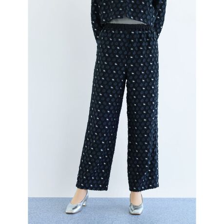 こだわり素材で仕立てた、雰囲気たっぷりのワイドストレートシルエットパンツ。細線の同色で施したサイドのパイピングラインが、さり気なく脚線をまっすぐに魅せるポイント。同素材のジャケットとセットアップ着用はもちろん、存在感ある生地を贅沢に使用しているためブラウスとのシンプルなスタイリングも華やかなシーンにフィット。寒さの残る時期には毛足感のあるニットと合わせたスタイリングもおすすめです。