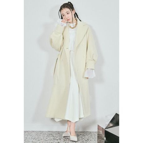 【モードでありながらフェミニンでレディな雰囲気も兼ね備えた上品なコート】【Design】太いベルトでウエストマークすれば、女性らしいフェミニンな印象になりますし、ベルトをせずにストンと落ちるシルエットで羽織ればモードかつクールに着用できるようにしています。また、ボタンを開いてガウンのように着流しできる羽織り心地のいいアウターにすることで、どんなシーンでも着回しできる優秀なアウターに仕上げました。ベルトをしなくても美しいシルエットで着用できるように、わずかにウエストをシェイプさせたIラインのシルエットに膝からフレアラインに広がるよう構築的なパターンにも拘っています。クールでモードさを表現しつつ、動くとさり気なく揺れるマーメイドのフレアが上品で大人の女性らしさを演出してくれます。美しいシルエットと、綺麗目見えさせてくれる生地で仕上げた【特別な一着】です。【Color】上品なイメージのL/BEG、華やかなL/YEL、クールでモード感のあるBLKの3色展開です。