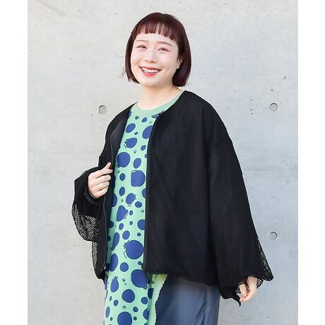 メッシュ面はトレンドの透け感を取り入れながら裏面がナイロン生地なので風を通さず暖かいです。