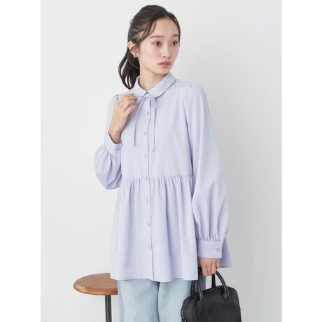 リボン付きデザインが可愛らしいギャザーシャツチュニック。