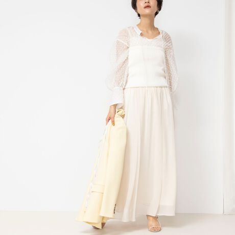 ・上は綿ポリエステルのストレッチ感のあるリブビスチェ、スカート部分はポリエステル100%のシアー上質シフォンを使用