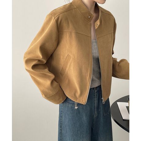 スエード素材を使用し、柔らかい触り心地と保温性を兼ね備えたおしゃれなジャケット。