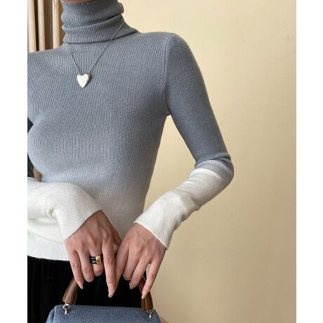 グラデーション染めが特徴のフレンチハイネックのニットセーターです。