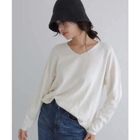 ■首元をスッキリとキレイに見せるVネックコットンニットトップス