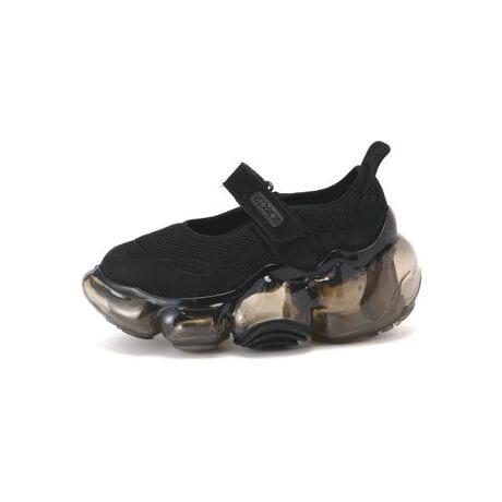 巨大なジェル状の何かを踏んでしまったようなフットウェア本来、体全体を支えるため頑丈であるべきはずのアウトソールを、あえて流動的で柔らかそうな形状にしてしまったところが遊び心をくすぐるデザイン。外側につけたラバーパーツがデザインにアクセントを加えています。アッパーはボリュームのある靴底とは対照的に華奢な仕上がりとなっています。シャープなシェイプと、土踏まずに作ったくびれ、つま先からかかとにかけて緩やかな傾斜をつけることで既存のスニーカーにはない上品でスラっとしたスタイルを印象を与えれくれます。また、アッパーはメリージェーン。ヌバックを使ったストラップはマジック式テープで止める仕様となっています。ヒールの高さはおよそ7cm。厚底でありながらも、靴底全体で体を支え、適度なクッション性を持たせることで、歩き疲れにくいように設計されています。grounds/グラウンズMIKIO SAKABEを手がけるデザイナー坂部三樹郎が監修するフットウェアブランド。「人間と重力(地球)の関係に変化をもたらすこと」「人間と重力(地球)の接点であるアウトソールと地面を中心とした人間づくり」をテーマに、ボリュームのある特徴的なアウトソールを組み合わせたフットウェアを発表しています。