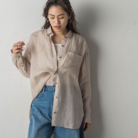 羽織るだけでこなれたムードが漂う、麻のオーバーシャツ。右裾に施したオリジナル刺?がさりげない存在感をプラス。