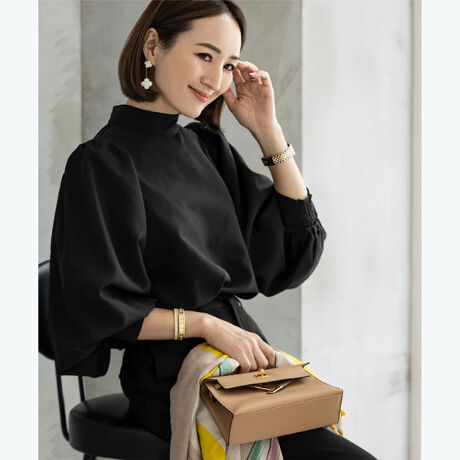 ボウタイを外してハイネックブラウスとしても着用可能。
