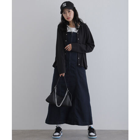 パールボタンがフェミニンなVネックのフライスカーディガンドロップショルダーが二の腕をほっそり◎オフィスワークでも使える万能アイテムで、着回ししやすく一枚あると色んな組み合わせを楽しめるアイテムです