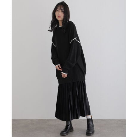 ハイネック配色ボリュームニット