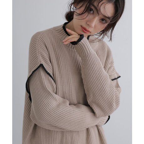 ハイネック配色ボリュームニット