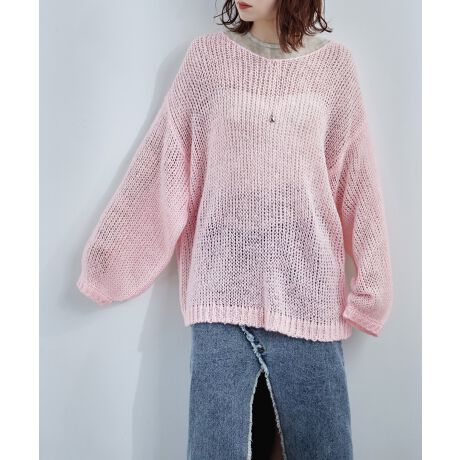 ふんわりとしたニットの風合いとルーズなシルエットが、シンプルながらも目を惹く一枚です。