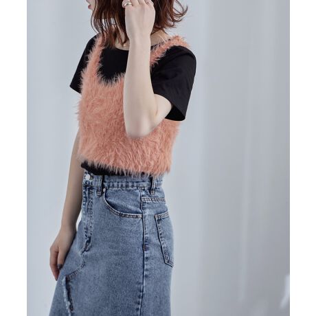 etoll. エトル 毛足の長い触り心地抜群のフェザーニットをつかったニットタンク。
