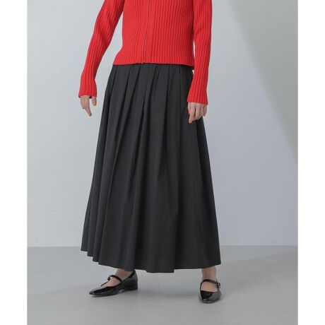 裾にかけて広がるフレアシルエットが女性らしいボリュームスカート。軽さと適度に落ち感のある素材を使用しているので、たっぷりとしたギャザーが印象的ながらもウエスト周りがスッキリ見えるようにボリューム感とサイズ感に拘った一枚。足首が見えるくらいの丈感なので、華奢見えも貢献するON/OFFで頼れるアイテムです。