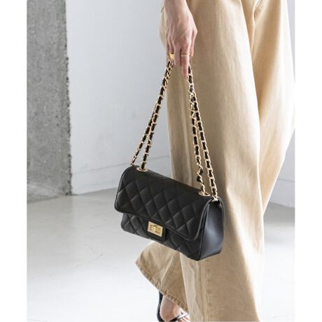 シンプルなスタイリングにもゴールドチェーンがアクセントになることで、どんな装いにもマッチし上品な印象に仕上げてくれるバッグです。