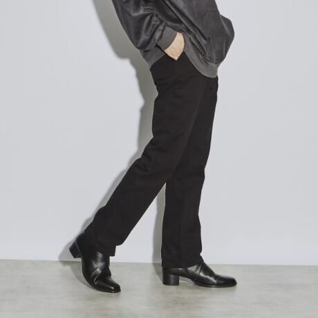 程よく光沢感のあるツイル生地で仕上げた定番チノパンツ。
