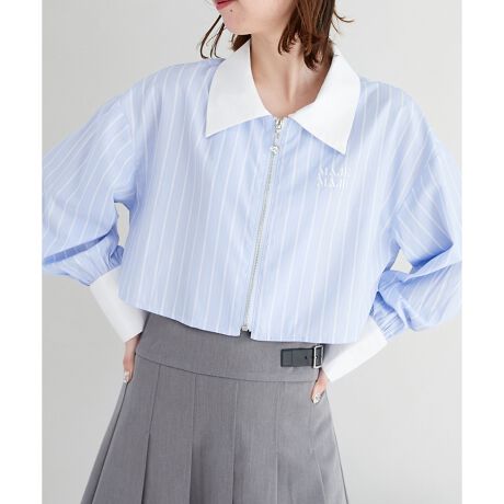 ハリのあるコットン素材を使用し、大きめのカラーとカフスのデザインがpoint◎