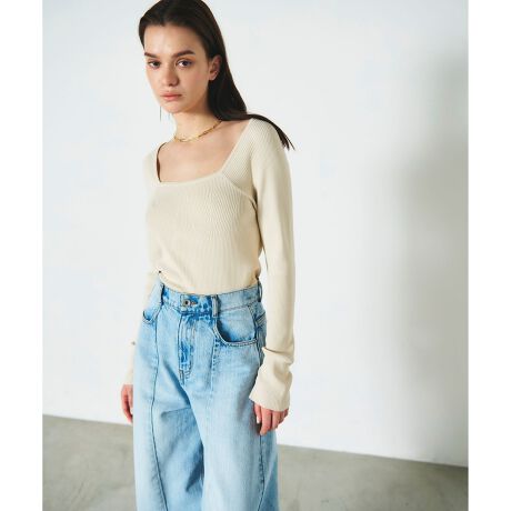 リブスクエアニットトップ
