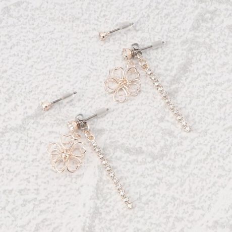 お花モチーフの繊細なピアスとキラキラスタッズピアスの4点セット。