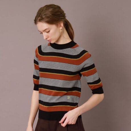 【1枚でも華やかなボーダーデザインのハーフスリーブニット】