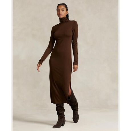 ウールブレンド ジャージー タートルネック ミディ ドレス