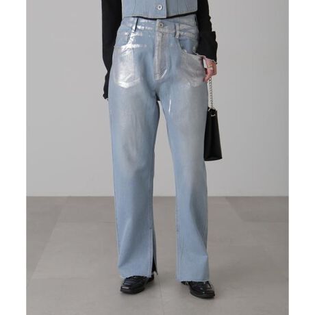 斜めにデザインしたアシンメトリーなベルトで、トップスINスタイルにワンテク効かせたデニムパンツ。程よいゆとりのストレートシルエットで、裾は内側に深いスリットを入れて抜け感を出し、足元を軽やかに見せてくれます。また、カス残しカラー以外はフロントボタンデニムビスチェ(店舗商品番号/1314110019)とのセットアップで、オールインワン風コーディネートもおすすめ。使いやすいカス残し、ワンウォッシュのインディゴ、ライトインディゴはトレンド感のある、シルバー箔押しプリント加工入り。(箔押しプリントは1点1点職人さんが手作業で加工を入れているため、個体差がございます。着用するごとに摩擦などによりプリントが薄くなる事もありますが、加工の特性上、こなれていく様とニュアンス感を同時にお楽しみいただけます。)※モデルの着用画像の場合、光の当たり具合により、実際の色味と異なって見えることがございます。色味は、商品単体の画像をご参照ください。