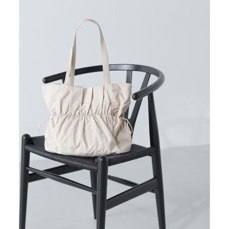 ギャザーをふんだんに入れたデザインと、トレンドのドローストリングディテールが効いた軽量なトートバッグ。本体サイドはペットボトルや折りたたみ傘などが収納できる便利なポケット付き。横にA4ファイルやノールパソコンがすっきり収まるサイズ感で、口元はマグネット付きできちんと閉じる仕様です。NBBのロゴがさり気なく入っているショルダーストラップがポイント。※モデルの着用画像の場合、光の当たり具合により、実際の色味と異なって見えることがございます。色味は、商品単体の画像をご参照ください。