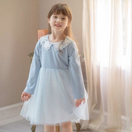 シンプルに着て、可憐なレース襟とふんわりチュールスカートで