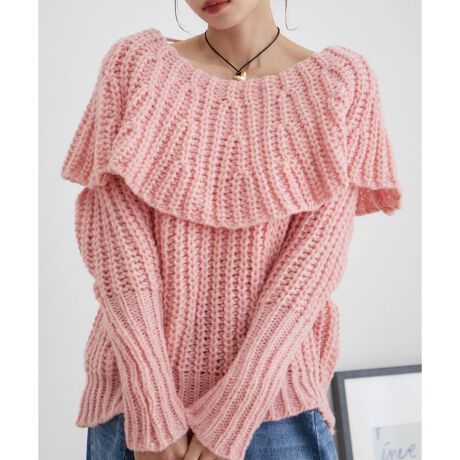 ビッグカラーざっくりニットプルオーバー【WEB・アウトレット限定】