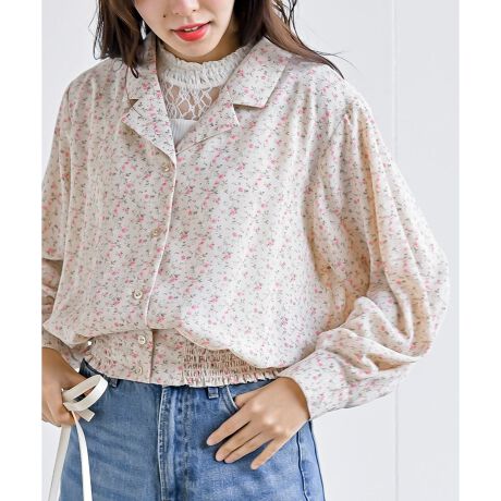 優しい色使いのレトロフラワーが女性らしいムードを演出するブラウス。