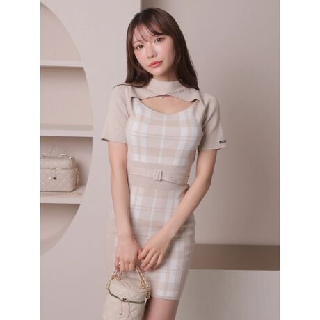 ・大きめなチェック柄がトレンド感のあるニットワンピース。