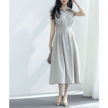 ウエストタック仕様でふんわり感がアップ。フレアシルエットをキープして女性らしい華やかな印象を与えます。
