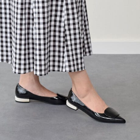 シンプルでありながらモダンな雰囲気のローヒールポインテッドトウパンプスが「ファビオルスコーニ」から登場しました。
