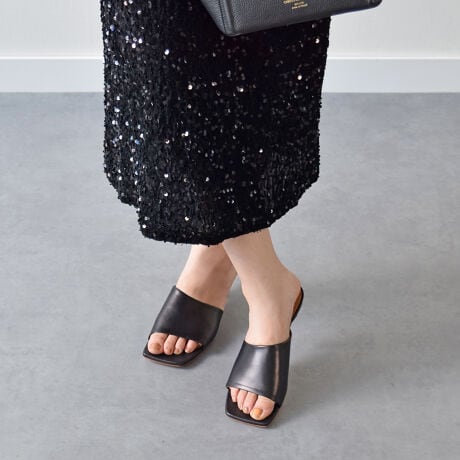 ワイドなスクエアトウとスプールヒールのフォルムがモダンな雰囲気のミュールサンダルが「ファビオルスコーニ」から登場しました。