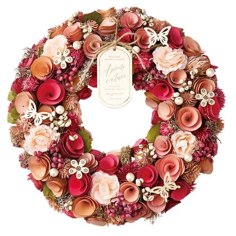 天然素材で作られた木の実や花をふんだんに使用!飽きの来ない自然な雰囲気が魅力なので、一年中飾れるのが嬉しいポイント。