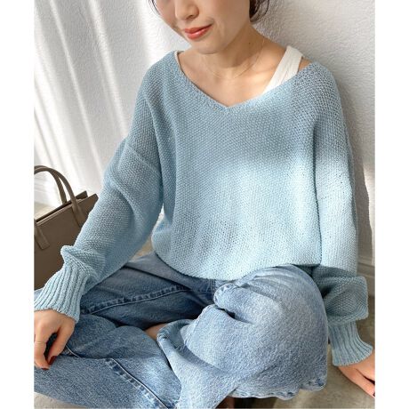 素材感:シャリ感がありサラッと軽い素材感。ニットですが少しだけ透け感もあるので暑い季節にもおすすめです。