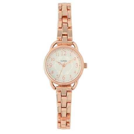 お出かけにぴったりな5気圧防水タイプで、電池も長持ち!機能性に優れた腕時計「アクア」が新登場。【5気圧防水で日常生活も安心】うれしい5気圧防水(日常生活防水)仕様。洗顔時・小雨などに一時的に濡れる程度なら大丈夫♪(※プールや海でのご使用は故障の原因となるため、お控えください。)【電池寿命は約4年!】省電力の日本製ムーブメントを採用。電池が長く持つので、交換の手間が軽減。【シンプルな文字盤】時刻を確認しやすい文字盤デザイン。文字盤ケース横のつまみで、簡単に時刻調節が可能。【着脱ラクラク!三つ折りタイプ】三つ折り式のバックルで、付け外しがスムーズ。忙しい朝もサッと身につけてお出かけ♪【落ち着きのある上品なデザイン】文字盤に刻まれたモチーフやストーンが、さりげないアクセント。大人可愛い仕上がりで、オン・オフ問わず活躍◎