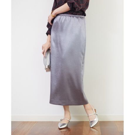 【トレンド感UP!/洗える】メタリックサテン ナローシルエットスカート