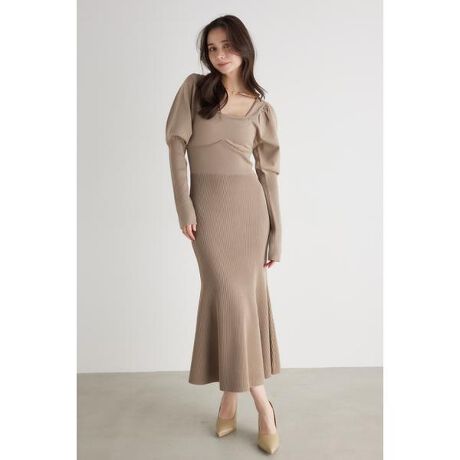 【コルセット風ディテールのスクエアデザインと美シルエットでモードでレディーなムードに仕上げてくれるワンピース】【Design】高めの切り替えしとリブウエストでスタイル効果抜群のニットワンピース。また、下に向かってしなやかに広がるマーメイドラインのスカートが女性らしく美しいシルエットを演出してくれます。肩にセットされたチェーンは取り外し可能にしているのと、前にセットしてネックレスのように演出しても良いですし、後ろにセットしても良いようにデザインしました。【Color】レディーな印象のBEG、大人なフェミニンさを引き出してくれるL/PNK、爽やかでトレンドのBLU、クールでシックなBLK色展開です。ブラックカラーのみ上WHT、ウエストからBLKのバイカラーになります。■透け感:無し■光沢感:ニット:無し、付属アクセ:有り■伸縮性:有り■裏地:無し