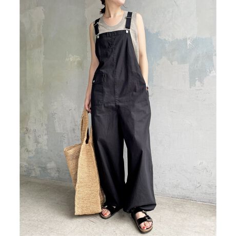 US.NAVYのデッキレインオーバーオールの形をベースに女性らしいラフな印象に仕上げました。