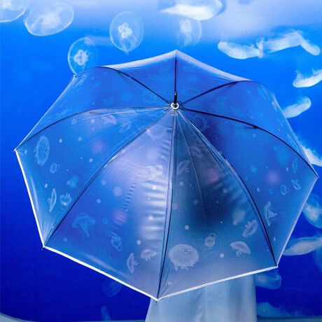 水族館の仲間たちが傘一面に広がるデザインは、まるで水槽の中から見上げているような、あなただけの特別な癒し空間です。