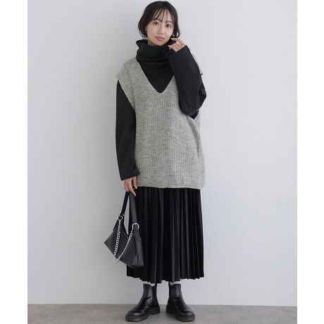 すっきりとしたネックラインが女性らしいシルエットで長めの着丈で体型もカバーお手持ちのトップスに合わせるだけで、トレンド感あふれるレイヤードスタイルを実現できます