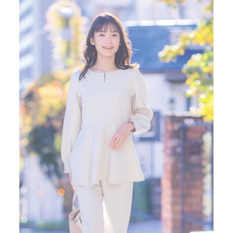 オフィススタイルからオケージョンシーンまで幅広く使えるペプラムブラウス。