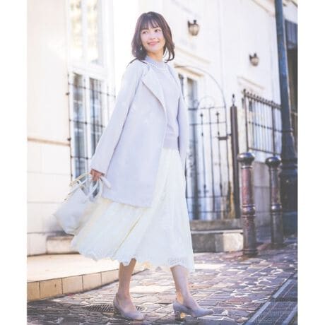 ニュアンス襟が柔らかな印象で女性らしさを演出。