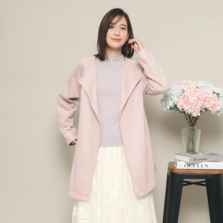 ニュアンス襟が柔らかな印象で女性らしさを演出。